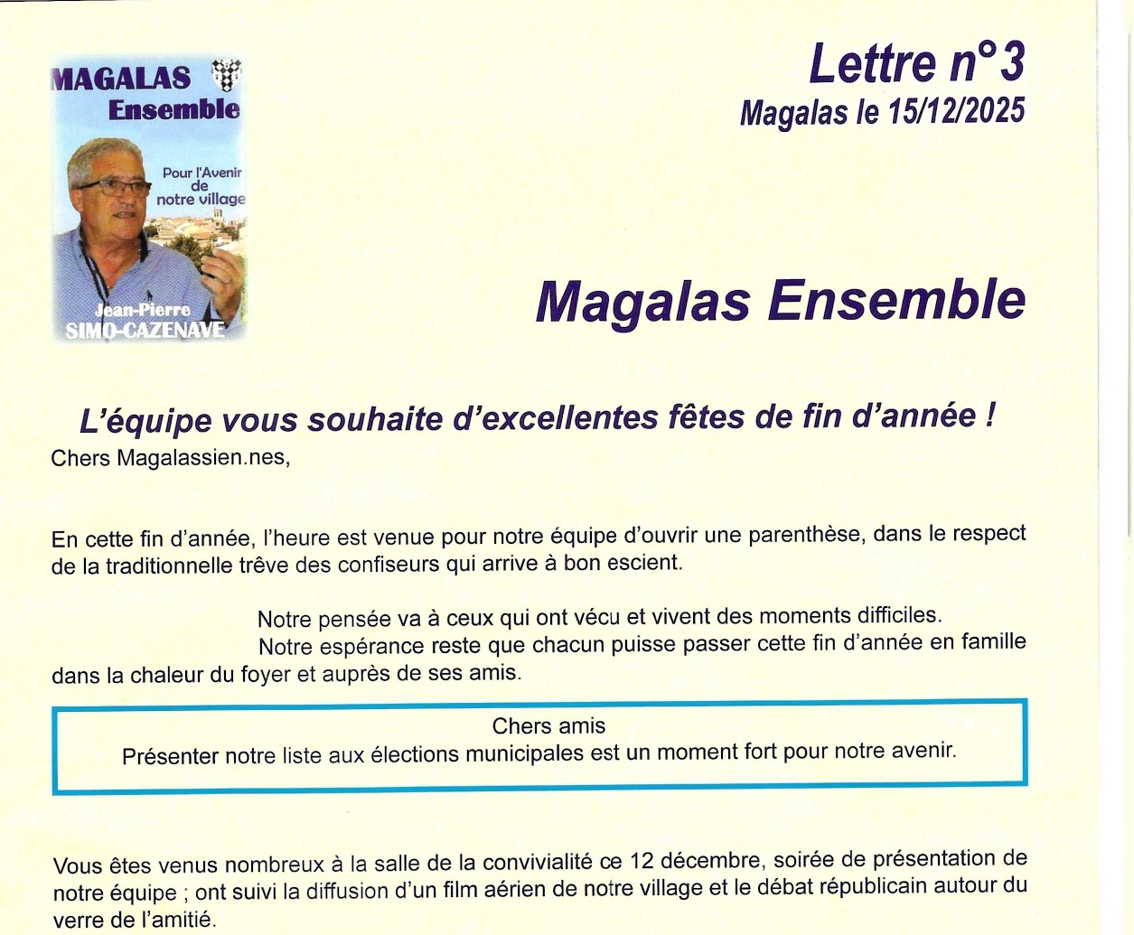 Depuis début septembre, la campagne pour les élections municipales a commencé. Votre liste MAGALAS ENSEMBLE est prête.